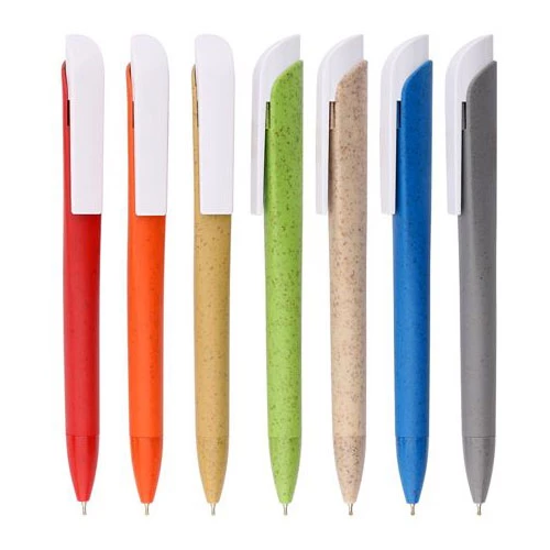 עט ממוחזר מתירס וחיטה גוף צבעוני קליפס לבן
